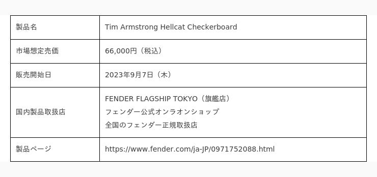フェンダー ミュージカル インストゥルメンツ コーポレーション(所在地:米国 カリフォルニア、CEO アンディ・ムーニー、以下FMIC)は、パンクバンドRancidの創始者であるティム・アームストロングのシグネイチャーアコースティックギター『Tim Armstrong Hellcat』より、チェッカーボード柄の新モデル『Tim Armstrong Hellcat Checkerboard』を発表しました。本製品は、2023年9月7日(木)より国内での販売を開始します。