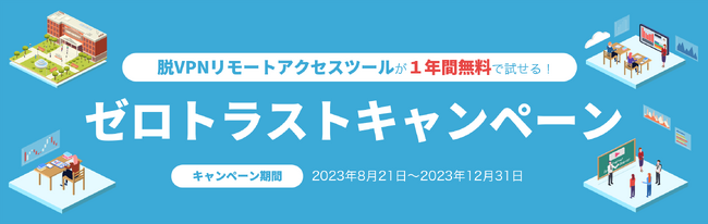 株式会社セシオス(所在地:東京都豊島区、代表取締役:関口薫、以下セシオス)は、VPNを使わないゼロトラストセキュリティに対応したリモートアクセスソフトウェア「Secioss Remote Gateway(読み:セシオスリモートゲートウェイ)」を1年間無償で使用できる、大学様限定の「ゼロトラストキャンペーン」を2023年8月21日より実施いたします。
