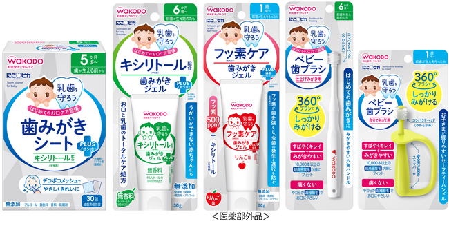 ・「にこピカ 歯みがきシート」、「にこピカ 歯みがきジェル」2アイテム、「にこピカ ベビー歯ブラシ」2アイテムの5アイテムを刷新します。