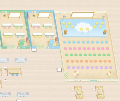 また、小学館の幼児教室ドラキッズの教室をイメージしデザインされた空間は、お子さまのわくわくする気持ち、楽習意欲を引き出します。