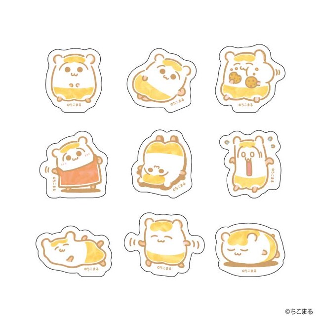 およそ4cm×4cm以内のフレークシールは、ひとつのグッズで9種類のちこまるのデザインが楽しめるお得なグッズです♪