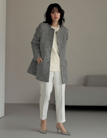 身に着けやすさNo.1のブラックと、女性らしさと端正な印象のホワイトの組み合わせ。 フェミニンにもマニッシュにも決まり、ドレッシーからカジュアルまで幅広いスタイルを楽しめます。 この秋冬のトレンドキーワードとしても押さえておきたいのは「エレガント」