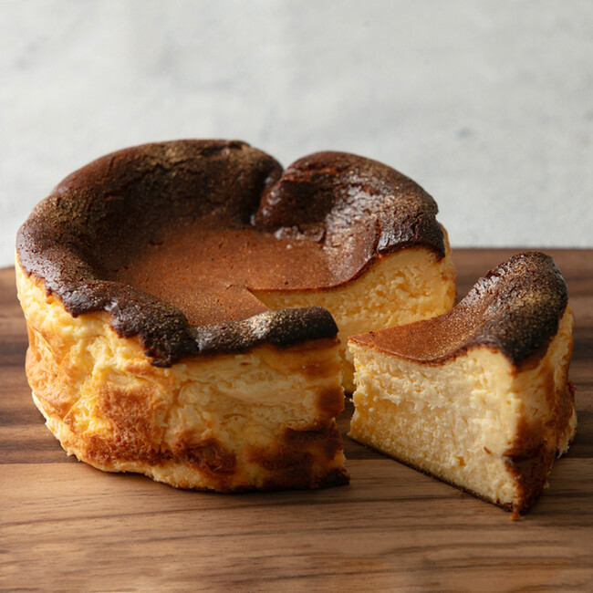 使用している卵は、地元名古屋が誇る「名古屋コーチン卵」のみ。クリームチーズとマスカルポーネチーズをブレンドし、ほどよい酸味とコクが特徴のバスクチーズケーキです。
