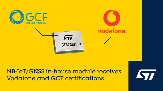 セルラー事業大手Vodafone社の認証テストにNB-IoTモジュール「ST87M01」が合格