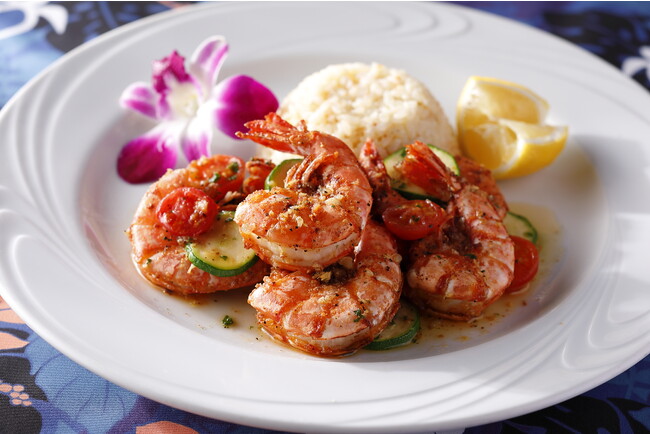 大ぶりの海老を食欲そそるガーリックバターで炒めた「マウイシュリンプ」。食べ応えのあるぷりぷりの食感が魅力の海老にズッキーニやミニトマトなど旬の野菜が彩りを添えます。