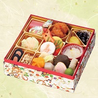 特大9.8寸のお重に和風・洋風・中華風・お子様風のお品をたっぷり詰め込みました。人気の別添品も多数あり、少しずついろんな品目を楽しみたい方におすすめです。