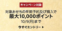 ご注文いただいたキャンペーン対象のおせちにAmazonポイント10,000ポイントを上限に一律30%の期間限定ポイントを付与。