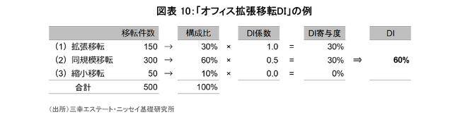 オフィス拡張移転DI=1.0×拡張移転件数構成比+0.5×同規模移転構成比+0.0×縮小移転件数構成比