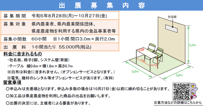 加工品は県産農産物を利用した商品の出品をお願いします。