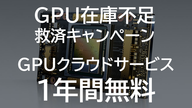 国内最大級のGPU専用データセンターを運営する株式会社ハイレゾ(本社:東京都新宿区、代表取締役:志倉喜幸、以下当社)は、GPUクラウドサービスが1年間無料で使えるGPU在庫不足の救済キャンペーンを実施します。
