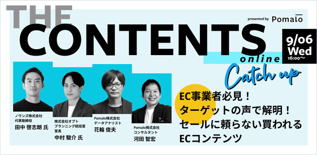 コンテンツ力を活かしてより良いコミュニケーション施策を提供するPomalo(ポマーロ)株式会社( 本社:東京都渋谷区、代表取締役社長:高橋崇之、 https://www.pomalo.jp/ 以下Pomalo )は、オンライントークイベントの第四弾「THE CONTENTS vol.4」を2023年9月6日(水)16時より開催します。