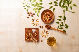 亀田製菓の代表商品『亀田の柿の種』ならではのカリッとした食感はそのままに、お米の甘さや香ばしさが際立つシンプルな味わいの素焼き柿の種と塩のきいたコクのあるアーモンドを組み合わせました。