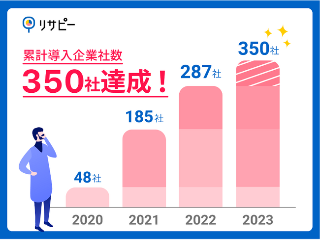 みなさまにご利用いただいて、リサーチデータマーケティング『リサピー(R)︎』は、導入企業社数が350社を達成いたしました。もともと調査を実施し、その結果を自社のニュースとして発信するサービスとして多くご活用いただいておりましたが、企業様からの課題をヒアリングする中で、コンテンツマーケティングの1つとして調査型のWPを活用したいというお声や、営業資料へ組み込むための説得材料として、また、メールマガジンのコンテンツや、セミナーの登壇テーマとしてなど、『リサピー(R)︎』のご活用方法は多岐に拡がってまいりました。このように、無限大に広がるリサーチデータの活用アイデアは、多くのクライアント様と共に常にバージョンアップし続けています。今後も導入企業様の課題解決を目指し、企業様の飛躍をサポートするべく歩みを進めてまいります。