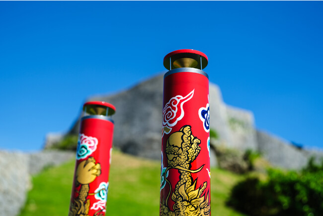 ベースの朱色は実際の正殿柱の塗料を調べ、何度も試作しながら本物に近づけるよう調合。