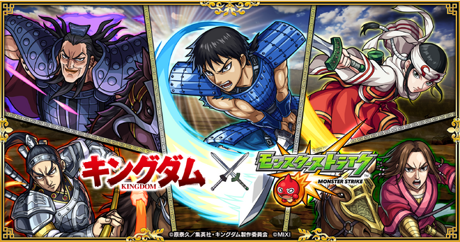 株式会社MIXI(東京都渋谷区、代表取締役社長CEO:木村 弘毅)は、スマホアプリのひっぱりハンティングRPG「モンスターストライク」(以下モンスト)において、TVアニメ『キングダム』とのコラボを9月1日(金)0:00より開催します。