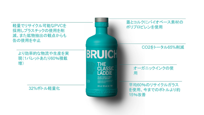 2023年8月30日 - アイラ島にあるブルックラディ蒸留所は、シンボリックなアイラ・シングルモルト「ザ・クラシック・ラディ」のボトルを画期的なアプローチで再構築し、環境への貢献を大幅に高めました。この取り組みにより、化粧缶の廃止とリサイクルガラスの導入による軽量化が実現し、パッケージに関わるCO2排出量を65%削減しました。