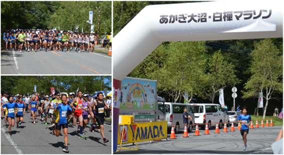 当日は、天候にも恵まれ、市街地との気温差マイナス10℃の涼しい風を感じながら、自然豊かな赤城山の大沼湖畔を参加者と共に楽しく交流しながら力強く走り抜けました。