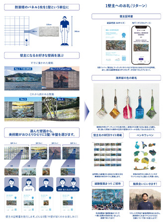 防潮堤のパネル(60cm×120cm)1枚=1壁という単位に換算。支援者には壁画の壁主になっていただきます。