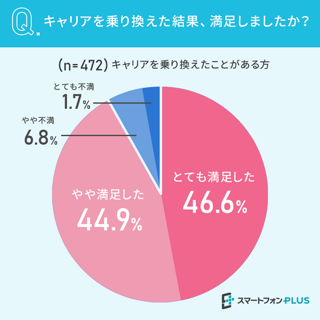キャリアを変更した結果、9割の方が「満足した」と回答しています。