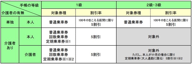 介護者の方に対して発売する乗車券は、精神障害者の方と同じ列車でご利用になり、乗車券の種類・乗車