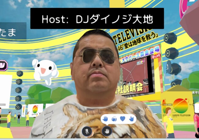 24時間テレビ本編の中継先としても機能していた会場では、そっくりアバターに扮した古坂大魔王が、テレビとメタバース会場を繋ぐリポーターとしても活躍しました。