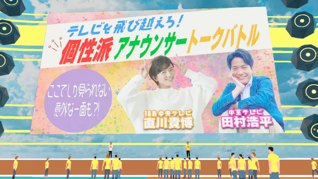同じく日本テレビ系列の福島中央テレビも「ふくしまステージ」を同空間に設立。中京テレビエリアと地続きで回遊可能な空間として、様々なステージイベントを実施しました。地元のアイドル「けっぱって東北」や、チャンネル登録者300万人超の人気動画クリエイター「HIMAWARIちゃんねる」をはじめ、人気インフルエンサーが続々登場。中京テレビ-福島テレビ 両アナウンサーのSPコラボも実施するなど、空間を越えたメタバースならではのコラボレーションを行いました。