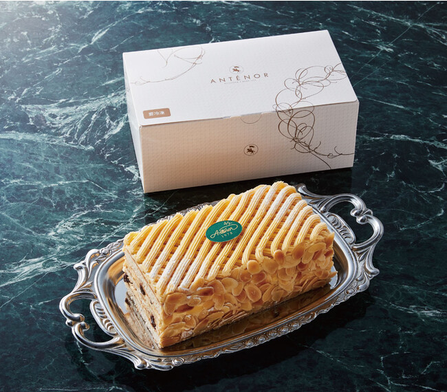 メレンゲとスポンジ生地を交互に絞って焼き上げたウィーンの伝統菓子にアンテノールならではのアレンジを加えた「カルディナール」、当時のシェフがヨーロッパで感銘を受けその味わいを再現したチョコレートケーキの「ガトーアンテノール」、さくさくのパイ生地になめらかなカスタードクリームをはさみ、甘酸っぱい苺をのせた「ナポレオンパイ」。どれも感動的な味わいだったという 3 品を皆様にお届けいたします。