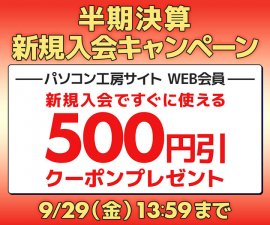 キャンペーン期間内にパソコン工房 WEB会員に新規登録をされたすべてのお客様に、今すぐ使える500円(税込)引きWEBクーポンコードをもれなくプレゼント!