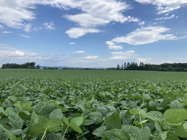 「yumyum産直うらごしえだまめ」は、北海道の産直提携産地JAめむろ産の枝豆に限定し、裏ごし加工しています。原料の枝豆は、採れたてのおいしさを逃さないよう、大型ハーベスターで収穫適期のさやを一気に集め、4時間以内にJAめむろ専用工場で加熱加工し、急速冷凍して保管します。