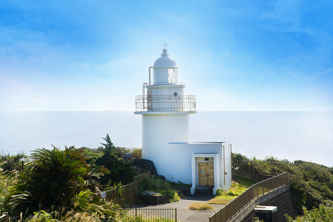 伊豆半島最南端の岬を照らす灯台。日本の灯台の父リチャード・ヘンリー・ブラントンによって建てられた初代の木造灯台が台風で大破し、昭和8年にコンクリート造灯台に建て替えられている。そして、平成5年に灯台の外装部分にタイルを貼り、現在の姿に。対岸には日本灯台史における重要灯台・神子元島灯台があり、石廊埼と神子元島には悲恋伝説が残されている。