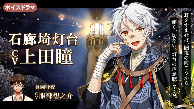 今回、お届けする第43弾では、新たに上田瞳さん演じる石廊埼灯台(静岡県南伊豆町)の守り人が登場。服部想之介さん演じるルポライター・長岡叶夜との対話の様子を、9月9日開催のニコニコ生放送【燈夜会(とうやかい)】にて初公開いたします。