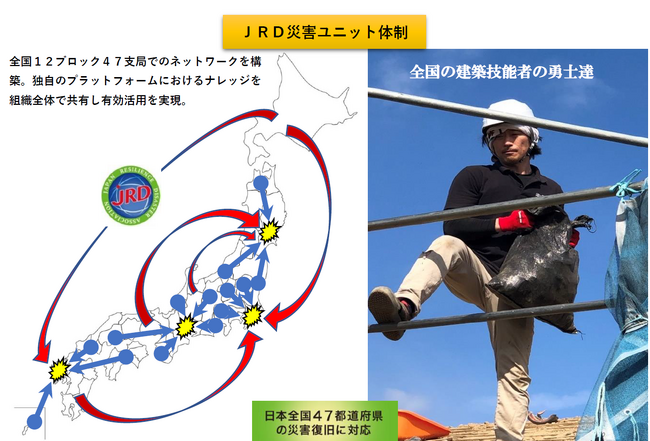 こうした課題の解決を目指し、JRDは全国の優良な建築業者との独自ネットワークを構築。大規模災害時には全国から業者を派遣し、迅速な復旧工事のサポートをするという日本初の仕組みを2020年に導入しました。