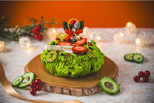ゴーヤの輪切りを模したケーキを販売します。見た目はゴーヤそのものですが、生地は抹茶味のバームクーヘンを使用し、南国を感じるパイナップルやマンゴーなどのフルーツと口当たりまろやかな生クリームと合わせています。さらに今年は、クリスマス本番の24、25日に、ホール型のゴーヤクリスマスケーキを数量限定で販売します。友達、恋人、家族、みんなでユニークなケーキを囲んで、クリスマスを楽しめます。