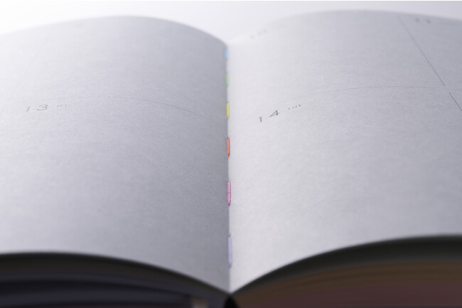 柔らかく開き堅牢な「糸かがり綴じ」に6色の糸を使っております。製本という技術を皆様に少しでも興味を持っていただくことと共に、使っていて楽しくなる。そんなダイアリーになってくれればと思っています。