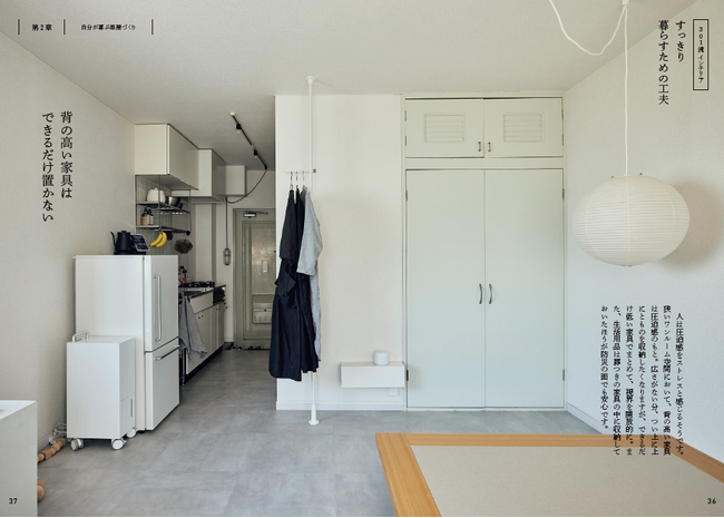 本書では、apartment301さんのものの選び方や、暮らしや空間の仕組みづくりなど、ワンルームでも、少ないもので美しく、自分らしく暮らすコツをご紹介します。