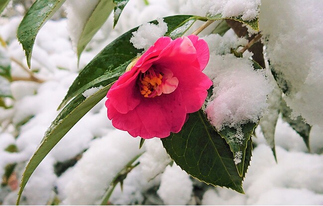 ユキツバキは日本海側の豪雪地帯のみに自生する低木性のツバキで、多雪地域に適応している品種です。厳しい環境でも進化を遂げてたくましく生き抜き、美しい花を咲かせる生命力に着目し、種子からのエキスの開発に取り組みました。ユキツバキの種子から抽出されるオイルは食用や化粧品などに使用されますが、通常廃棄されているオイル抽出後の残渣をユキツバキエキスの開発に有効活用しています。
