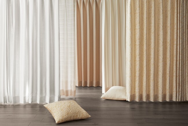 この度ニトリは、上記の取り組みの一環として、ペットボトル等のリサイクル原材料から生まれた⽷を50%以上使用した、環境にやさしいオーダーカーテンの販売を開始いたしました。洗濯可能なポリエステル100%でありながら、ナチュラルな素材感や風合いを表現した全16種類の生地は、どんなお部屋にも合わせやすく、場所を選ばずご使用いただけます。生地をたっぷり使用したオーダーカーテンらしい2倍ヒダのスタイルで、高級感のあるお部屋を演出するのにもぴったりなシリーズです。また、オーダーカーテンならではのフラットスタイルやタブスタイルなど、よりナチュラルなスタイルを選択していただくこともおすすめ。さらに、全シリーズ防炎機能付きで、機能面でも安全安心を実現しています。