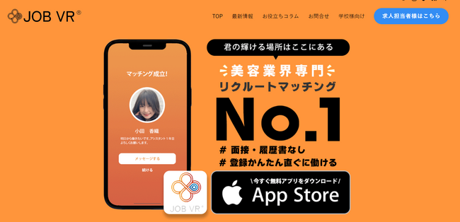弊社が開発し、現在取り組んでおります「JOB VR」というマッチングアプリは、サロン様と学生様を繋ぎます。