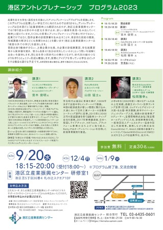 【大学生・高校生向け 第2回アントレプレナーシッププログラム / 港区立産業振興センター】