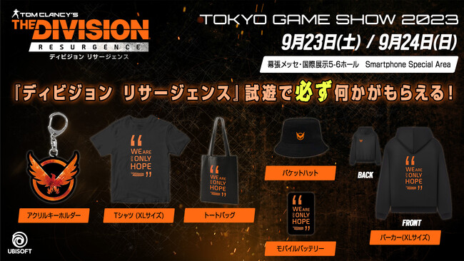 ユービーアイソフト株式会社は、2023年9月21日から24日(9月21日・22日はビジネスデイ)まで幕張メッセにて開催を予定している「東京ゲームショウ2023(以下「TGS2023」)」においてパートナー企業ブースにて出展することを発表いたします。『レインボーシックス モバイル』と『ディビジョン リサージェンス』最新版の試遊や、豪華ゲストを招いてのスペシャルステージを実施します。