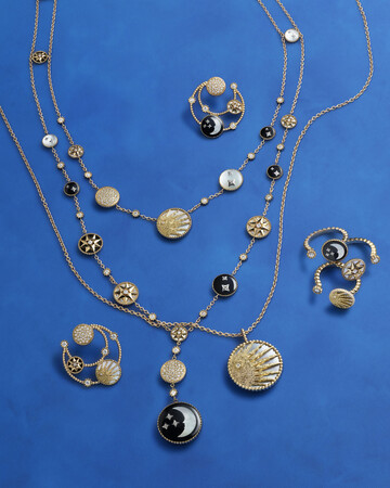 創設者であるクチュリエ クリスチャン・ディオールの迷信深く、とりわけタロットや占星術に対して熱心であった一面からインスピレーションを得た「ローズ セレスト」コレクションに魅惑的な新作ジュエリーが計3モデル加わります。ネックレス2モデルとイヤカフからなるこの特別なクリエイションは、月と太陽という象徴的な2つの天体を魅惑的なダブルフェイスデザインによって再解釈しています。神秘的な天空に誘うように優美な煌めきに溢れる新作「ローズ セレスト」は、2023年9月8日より発売予定です。
