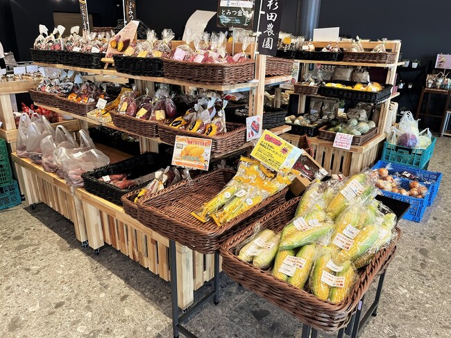 農産物直売所では、収穫された新鮮な農産物の良さや安全性を発信するとともに、生産振興を図るためファーマーズマーケットを整備。スイカやメロン、梨、柿、サツマイモなど、四季折々の果物や野菜を販売しています。