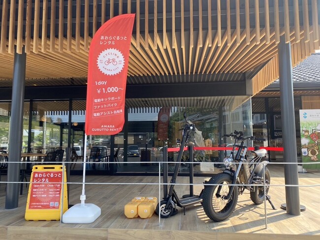 道の駅周辺の観光スポットを楽しんでもらうため、レンタルできる自転車を配置しています。全て電動なので、安心して遠出できます。事前に予約が必要です。