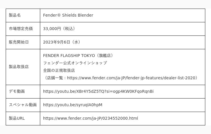 フェンダー ミュージカル インストゥルメンツ コーポレーション(所在地:米国 カリフォルニア、CEO アンディ・ムーニー、以下FMIC)は、My Bloody Valentineフロントマンであるケヴィン・シールズのシグネイチャー エフェクトペダル『Fender(R) Shields Blender』を9月6日(水)より販売開始しました。本製品は、6月の発売後に即完売した数量限定製品『Limited Edition Fender(R) Shields Blender』のレギュラー版となり、フェンダー公式ショップ及び全国の正規取扱店にて販売します。