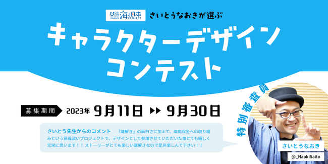 本作のメインキャラクターをデザインするのは、人気イラストレーターの「さいとうなおき」氏です。魅力的なキャラクターデザインと物語で、謎解きだけではなく総合的な”世界観”を楽しめる作品を目指し、本来の目的である海洋問題に関する啓発効果やメッセージの訴求効果を高めます。