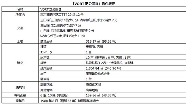 不動産小口化商品『Vシェア』「VORT芝公園III 6階・10階」を555口にて販売開始