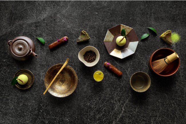 ペストリーシェフ 大内 浩司とセイボリーを指揮するイベントキッチンシェフ 赤木 好典がティーサロンへ足を運び、テイスティングを行いながらティー・デザイナーである酒井氏からのアドバイスを得て、数ある拘りのお茶の中から、シェフの和モダンなスイーツとセイボリーのアイディアにマッチした6種類のお茶をセレクト。茶師十段が作ったオリジナルブレンドの「抹茶」と、市場では見かけることが少ない希少な「碾茶」を使用した濃厚なバスクチーズケーキや、時間をかけて丁寧に香りづけされた最高級ジャスミン茶葉を使用したグラスデザートなど、多様なお茶の美味しさと奥深さが味わえるグランドプリンスホテル大阪ベイでしか体験できない趣向を凝らして唯一無二のアフタヌーンティー&ブッフェに仕上げました。
