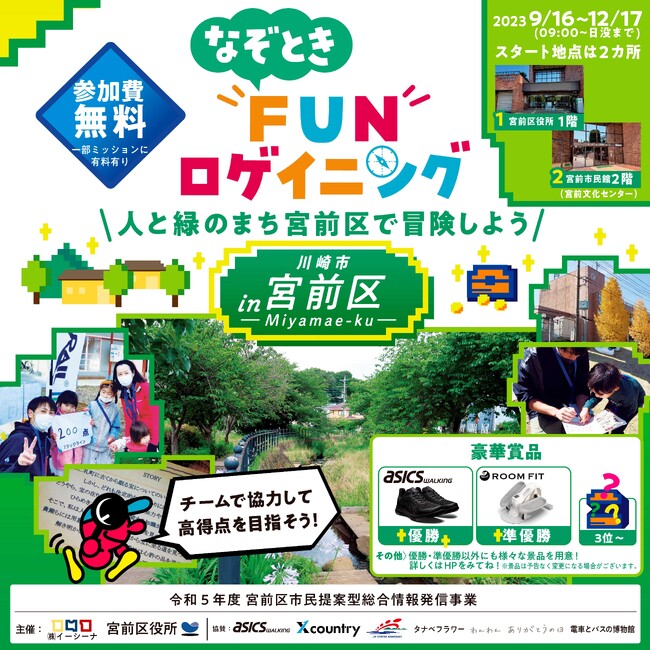 RPG(ロールプレイングゲーム)のように仲間とチームを組んで、町を冒険するリアル版RPG『なぞときFUNロゲイニング』を企画運営する株式会社イーシーナ(東京都品川区)は、2023年9月16日から神奈川県川崎市宮前区で、「常設型」を3か月間限定で開催する。