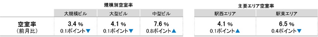 全規模ビル 主要エリア 空室率:「駅東」2ヵ月連続で低下
