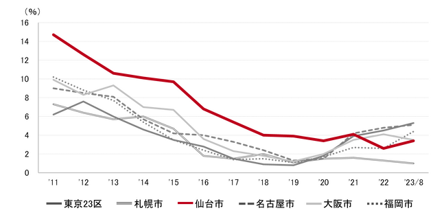 [仙台版]【最新オフィスマーケットレポート発表】オフィス空室率 2ヵ月連続で4%台後半を記録(三幸エステート)